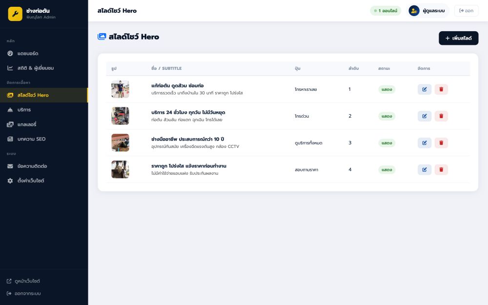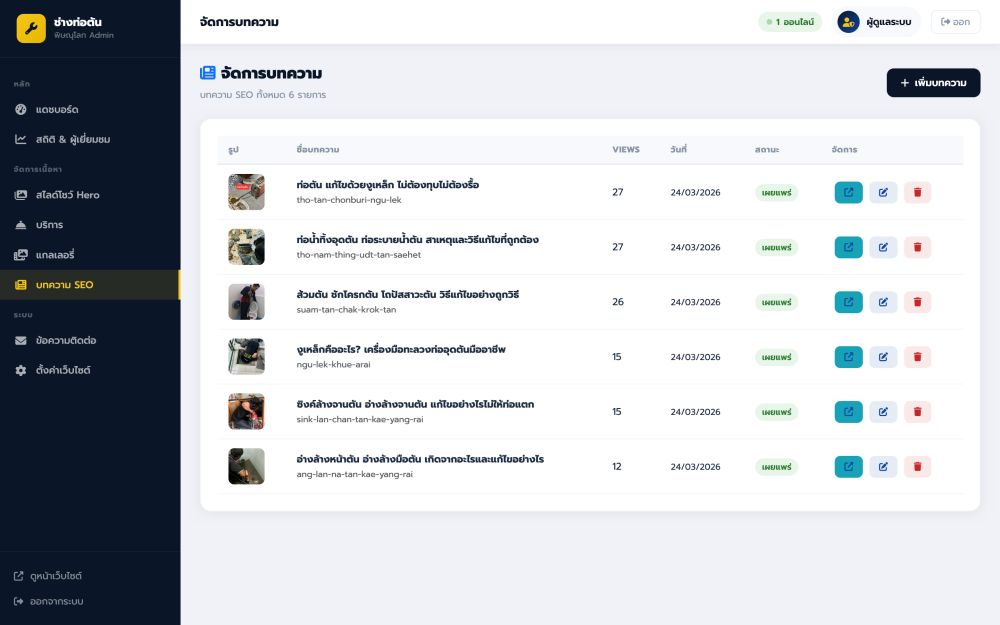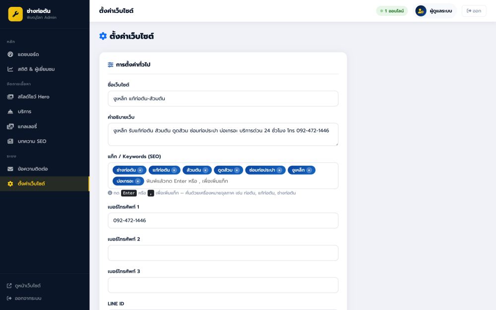 ออกแบบเว็บไซต์ช่างแก้ท่อตัน บริการแก้ไขท่อตัน