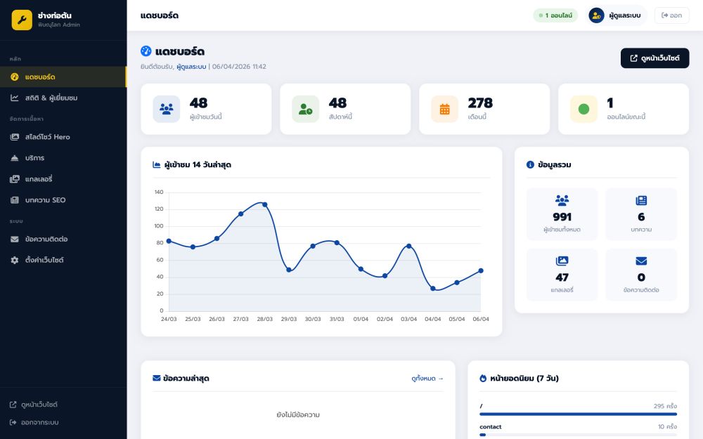 1. ปุ่มติดต่อ (CTA) เด่นชัด : เบอร์โทรและ LINE มองเห็นง่ายทุกจุด ตอบโจทย์ผู้ใช้ที่กำลังเจอเหตุฉุกเฉิน
