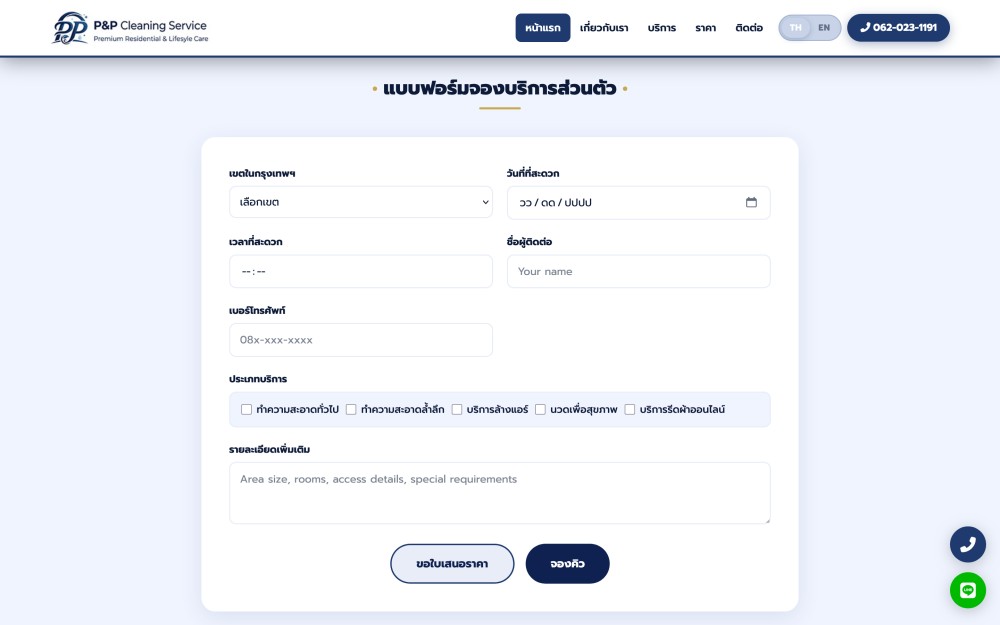 ทำเว็บบริการทำความสะอาด จองแม่บ้านออนไลน์